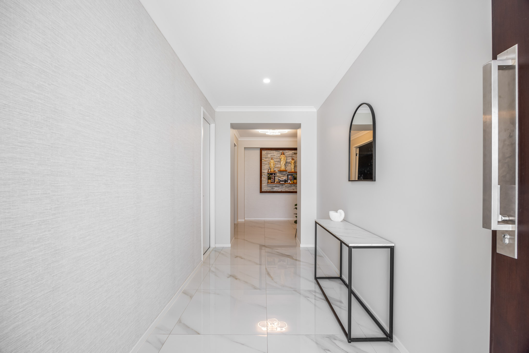 Throughout the home, plantation shutters, soft sheer curtains, and bold feature wallpaper provide a stylish, contemporary feel. The bathrooms are a masterpiece, with floor-to-ceiling tiling that adds a touch of opulence to your daily routine. You’ll also be impressed by the extra-large, blacked-out media room — the perfect space for movie nights or immersive entertainment.